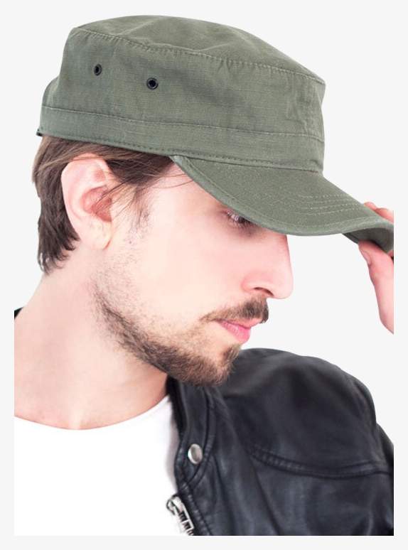 Army Cap är en keps i ripstopbomull utformad med militär stil och kardborreknäppning. Den har ett bomullsband, en avlastad frampanel och en lätt böjd skärm med fyra sömmar. Metallöglor ger ventilation. Insidan är fodrad.