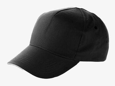5-panel kepsen har sandwichskärm och kontrasterande knapp. Stängningen sker med kardborrband. En storlek.