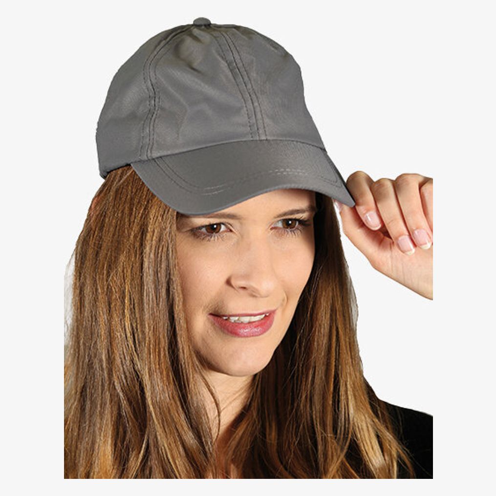 6-panel keps med vattenavvisande, andningsbart tyg och böjd skärm. Den har ett metallspänne för stängning och en ostrukturerad, mjuk och flexibel framdel.