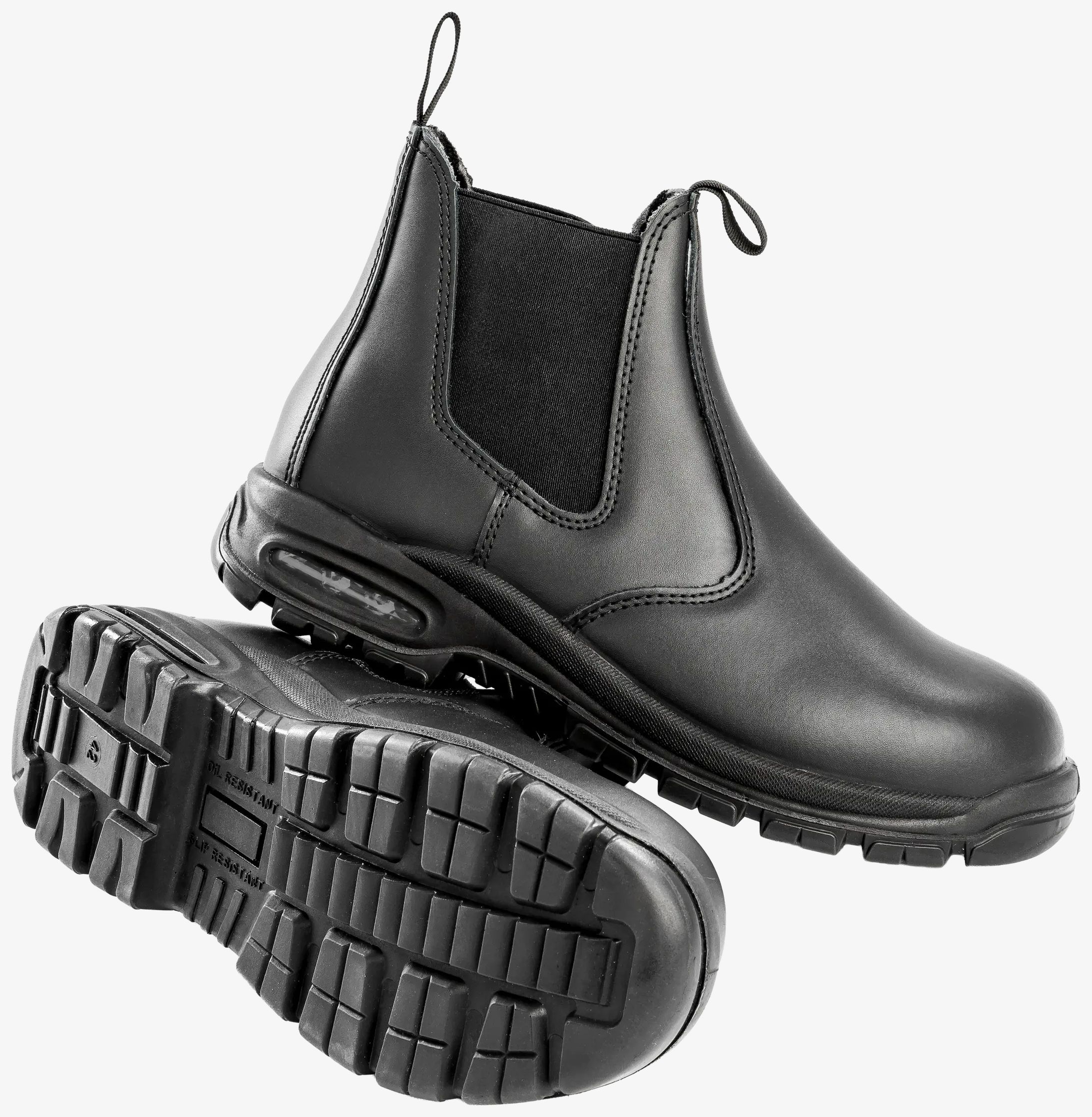 Kane Safety boot är en unisex skyddssko, avsedd för arbete, med ovandel i läder och elastiska sidopaneler. Häl med luftkudde, lätt vadderad insida i mesh, sidoventilation.