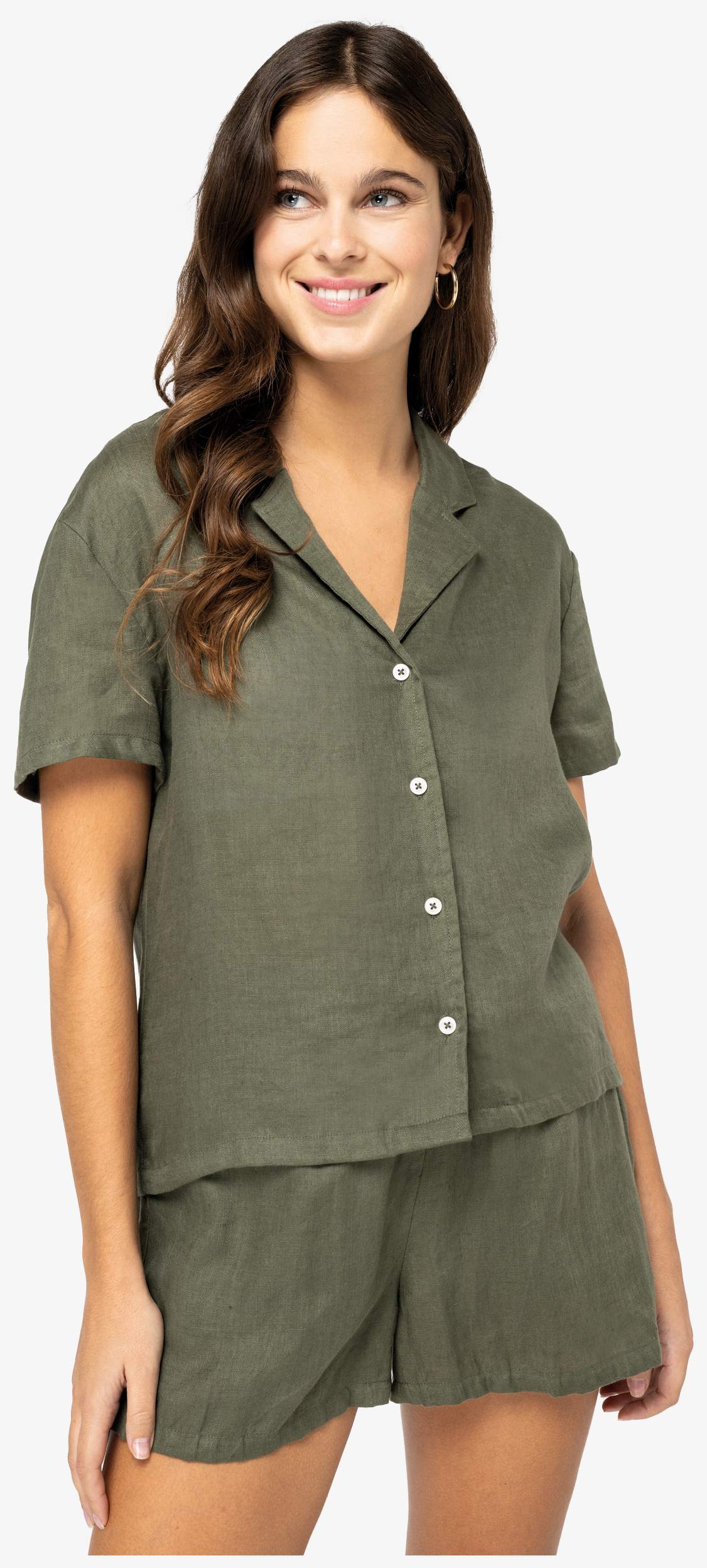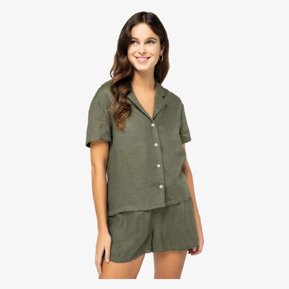 SP523 - Chemise manches courtes en lin à col bowling femme - organic_khaki