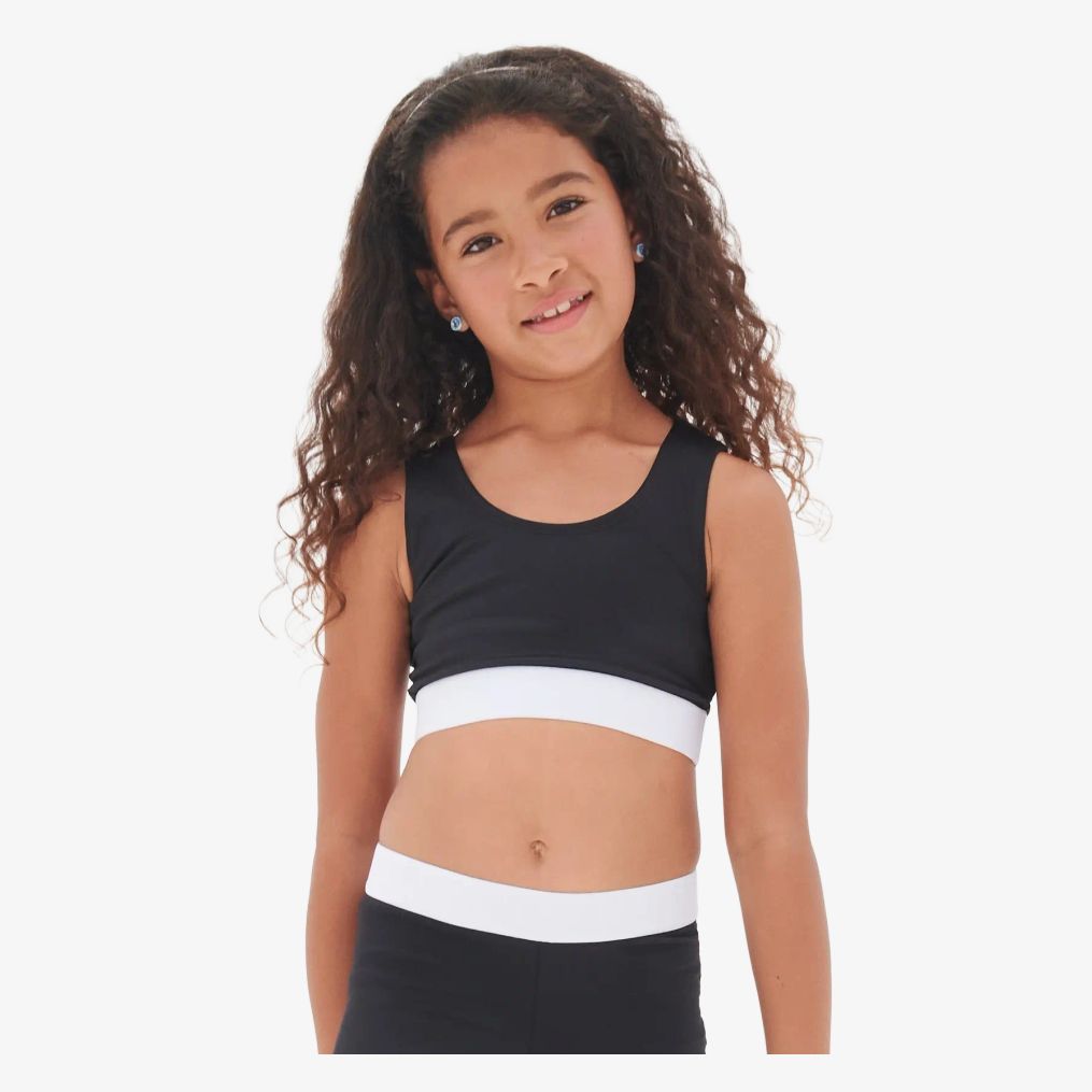 Crop top för barn är tillverkad huvudsakligen i polyester med en insats av elastan. Den innehåller ett mjukt elastiskt band som kan tryckas på och en avtagbar etikett för att underlätta byte.