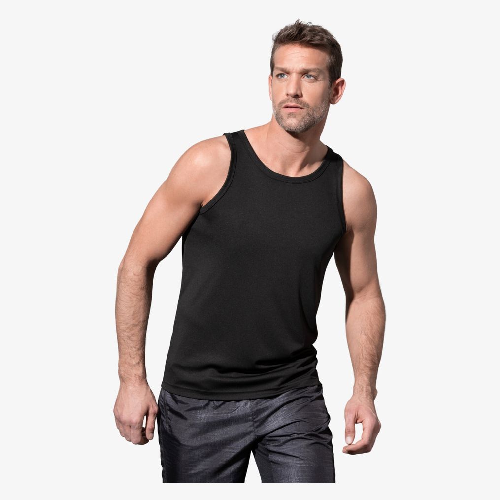 Sports Top är en kroppsnära sporttopp för män i funktionell interlock med snabb torkning. Den har ett tätt mycket elastiskt stretchmaterial med en slät yta och ett andningsbart material som reglerar fukt. Detta plagg har ingen varumärkesetikett i nacken.