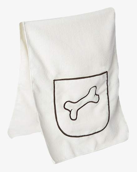Hundfilten har en ficka med ett broderat benmönster. Måtten är 40 x 100 cm. Materialet är 100% polyester.