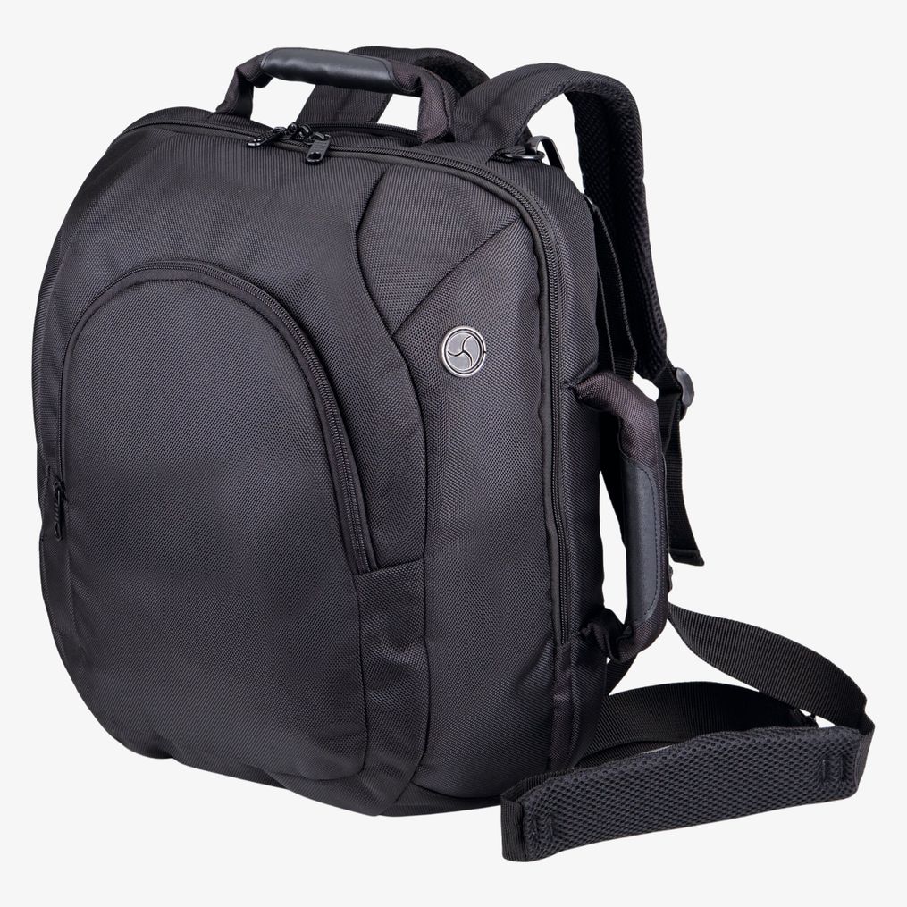 Datorryggsäck för användning som ryggsäck eller portfölj, med dolda axelremmar och avtagbar justerbar axelrem. Ett vadderat mittfack rymmer en dator upp till 17\" samt dokument. Frontficka, öppning för hörlurar och integrerad nyckelhållare.