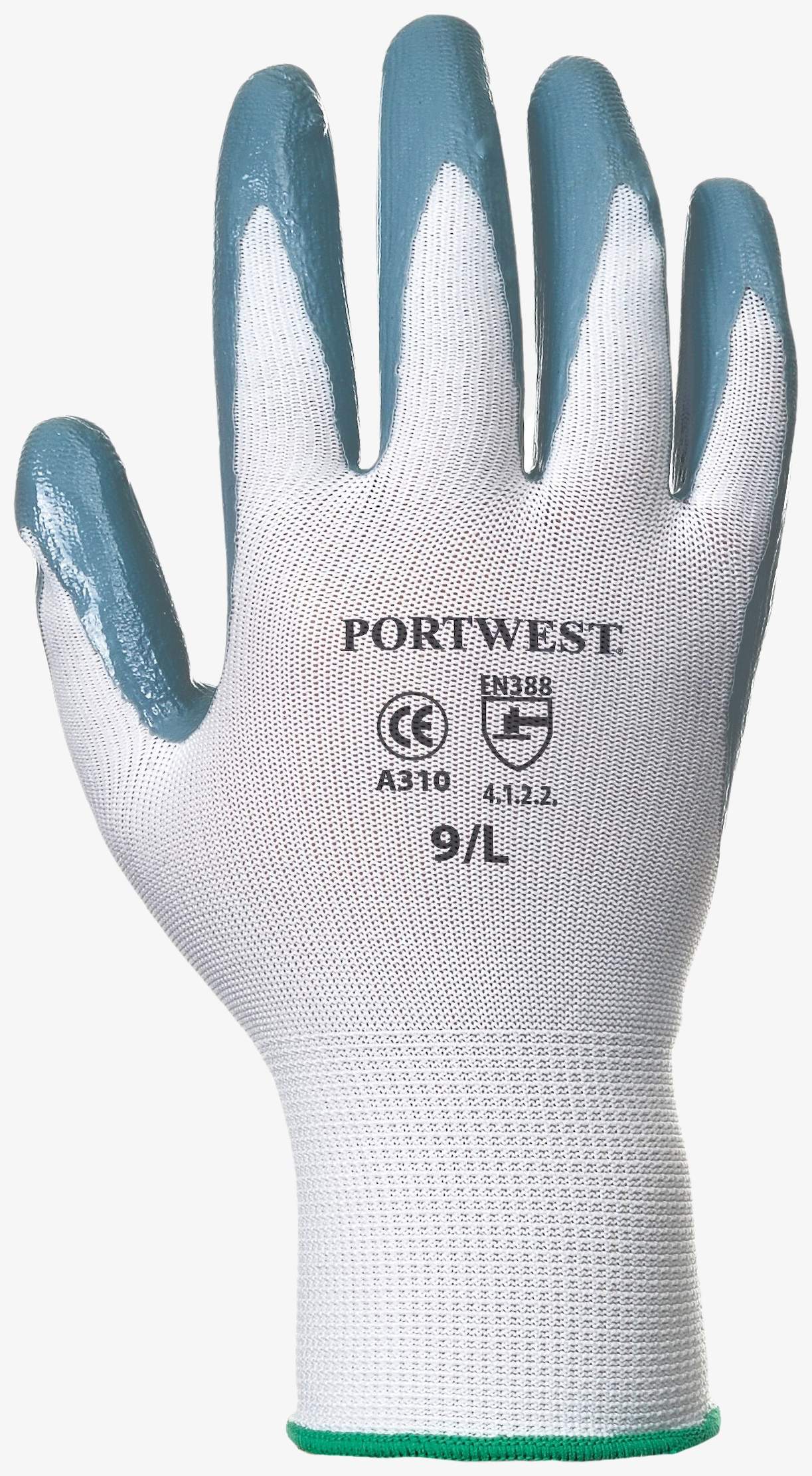 Flexo grip nitrile glove är tillverkade i sömlöst nylon 13 gauge med nitrilbeläggning på handflatan och fingrarna, vilket ger ökad slitstyrka.