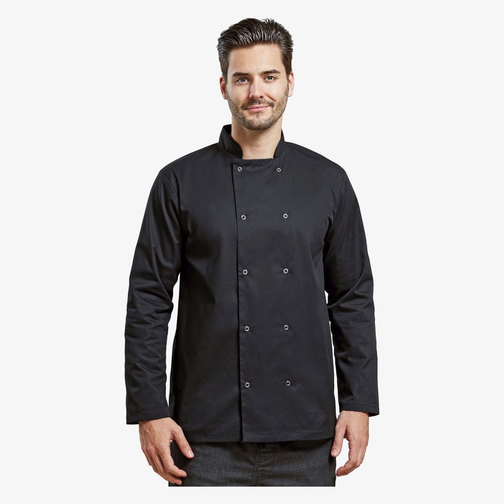 PR665 - Veste de cuisine à manches longues et à boutons pression - black