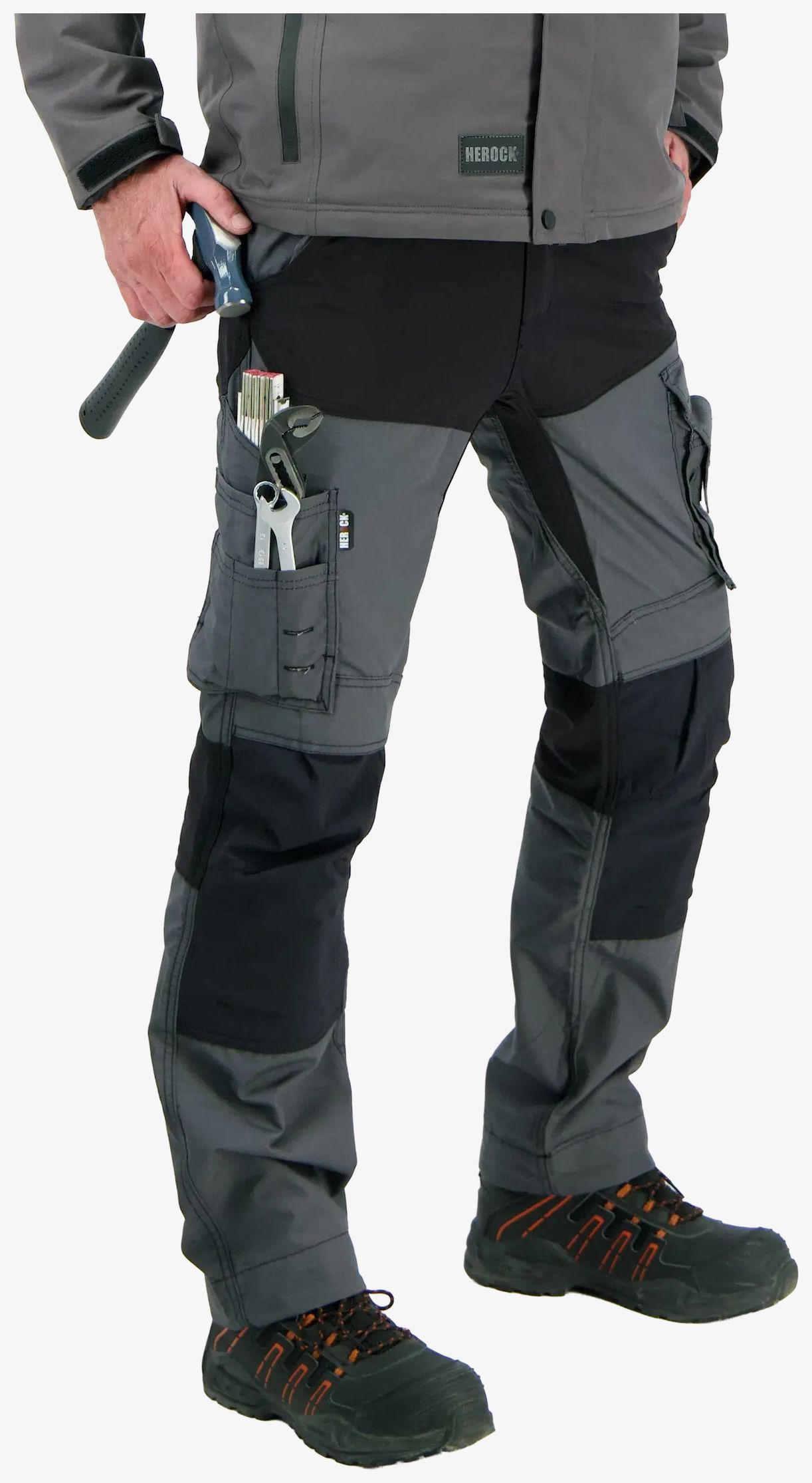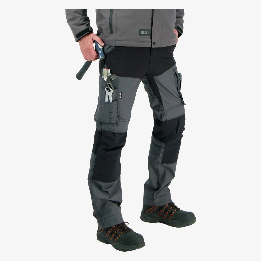 Hector Trousers är ett par flerficksbyxor med 4-vägs stretchpartier i grenen och vid knäna. Överklädd knapp, ID-kortshållare, hammarögla och förlängningsbar fåll.