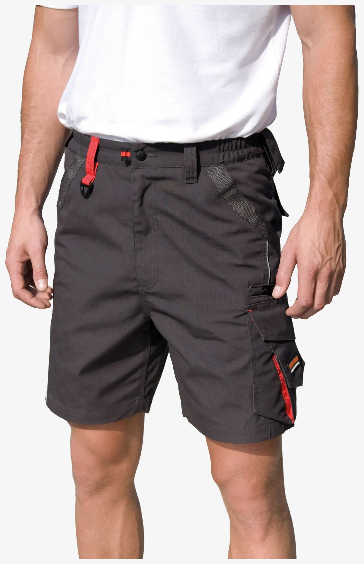 The TECHNICAL SHORTS is made of polyester and cotton with an elastic waistband for flexible fitting. It features multiple pockets for various uses, as well as contrasting panels.