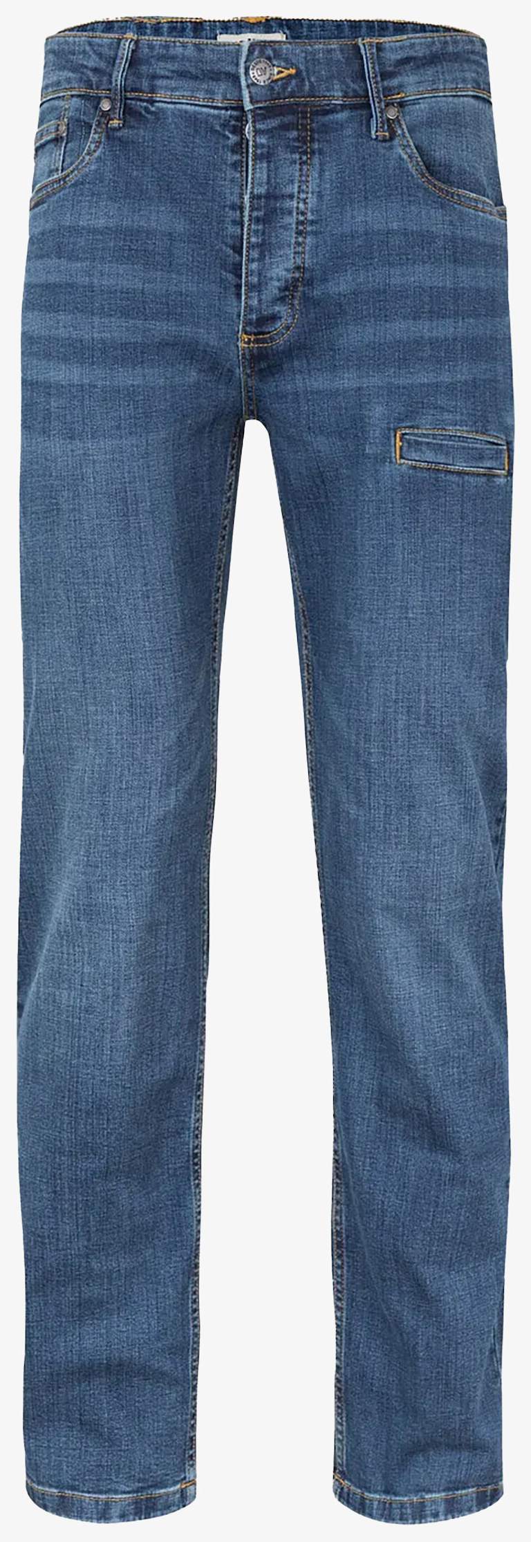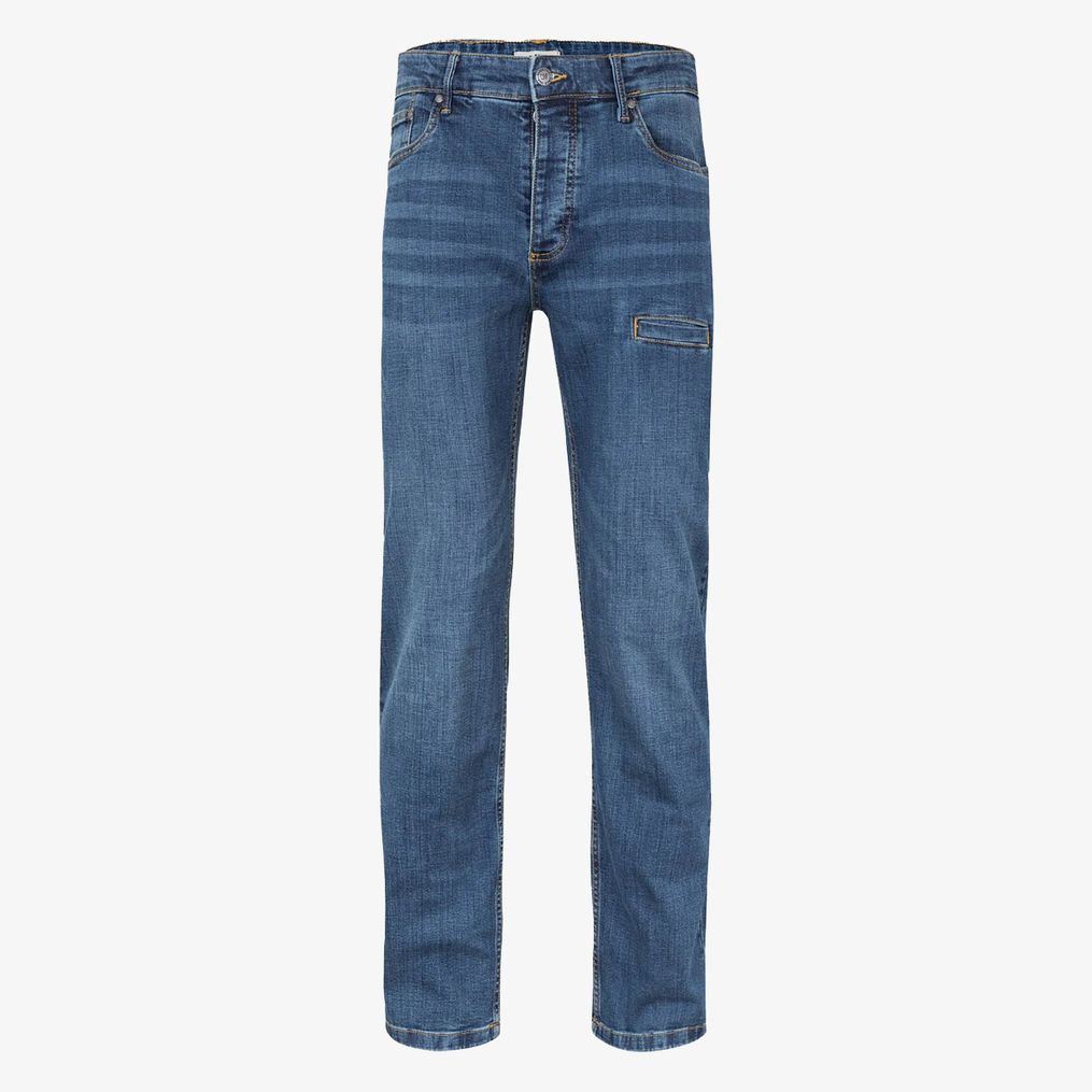 Jeans stretch har en slim passform med dragkedja och knapp. Den har flera fickor anpassade för förvaringsbehov. Dubbla sömmar ger ökad hållbarhet och metallnitar förstärker belastningspunkter.