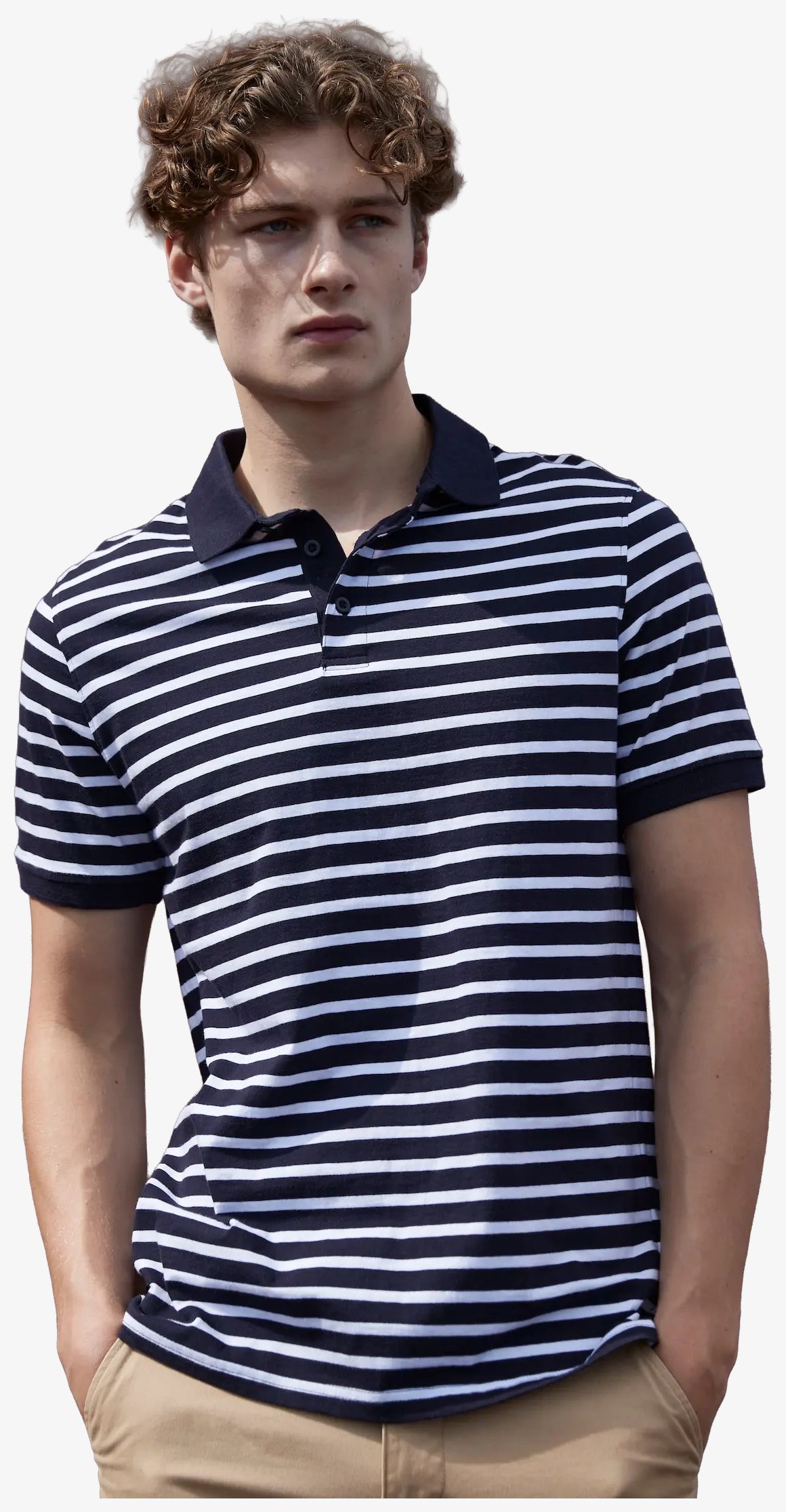 Marintröjan i bomullsjersey kännetecknas av en 1 x 1 ribbad krage, flatstickade muddar och en knappslå med 3 knappar. Sidorevorna har kontrasterande insida med fiskbensmönster.