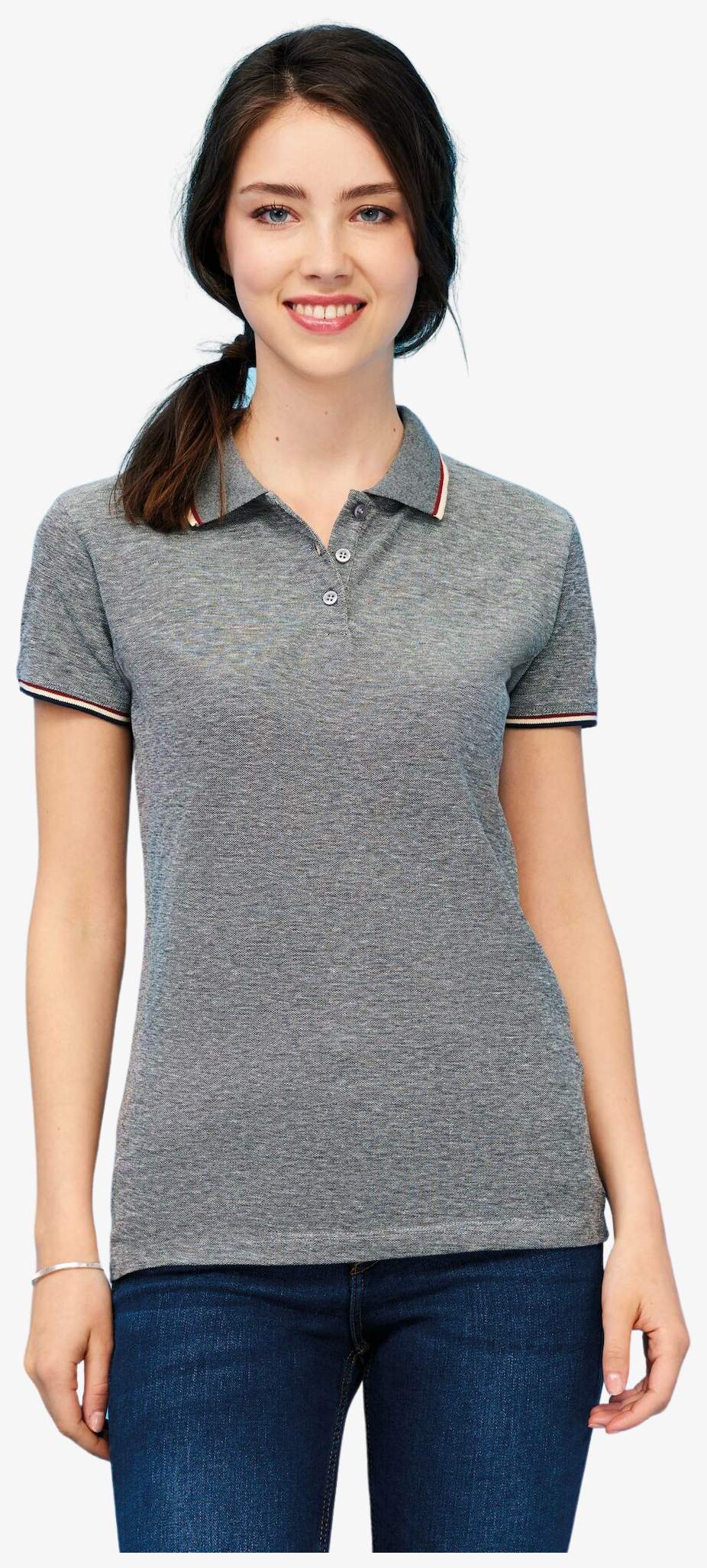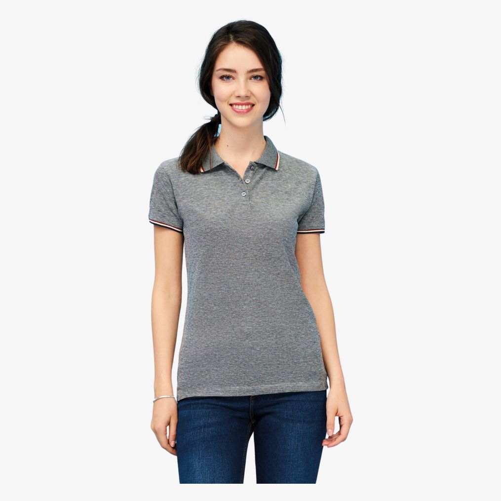 Den melerade pikétröjan för kvinnor är tillverkad av 60% bomull och 40% polyester för en balanserad konstruktion som främjar komfort och hållbarhet. Dess pikéstruktur ger plagget en specifik textur.