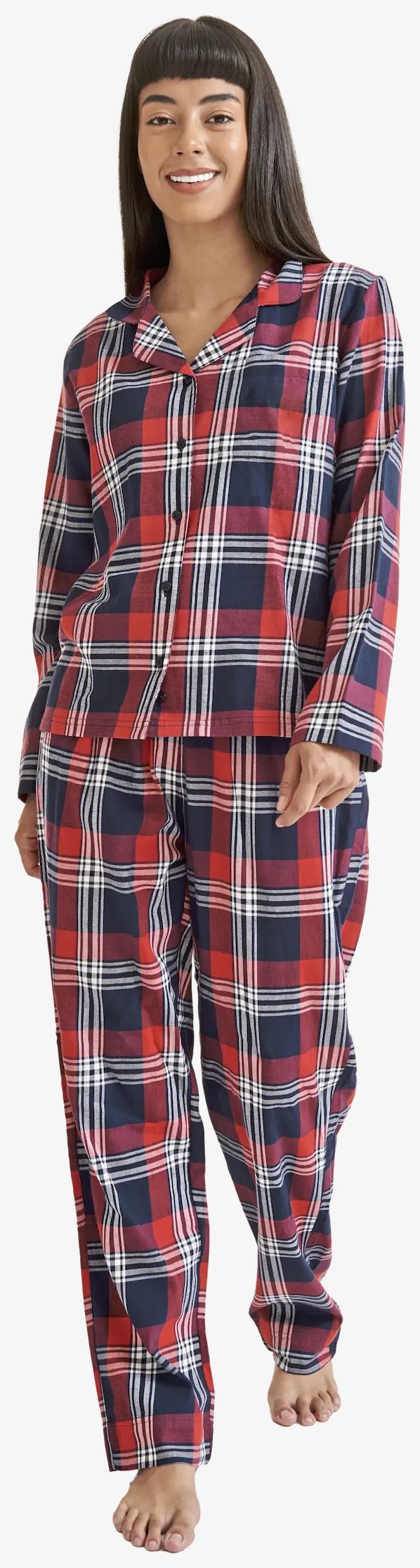 Women's tartan lounge set inkluderar en avslappnad skjorta med knappar och en påsydd ficka med dekorativ söm på bröstet samt ett par byxor med slät fåll. Byxans midja är helt resårbelagd och muddarna har dubbel söm i samma tyg. Setet är i 100 % bomull.\n\n- Skjorta med knappar\n- Påsydd bröstficka med dekorativ söm\n- Byxor med resår i midjan\n- Muddar med dubbelsydd söm i tyg Vikt : 115g/m²
