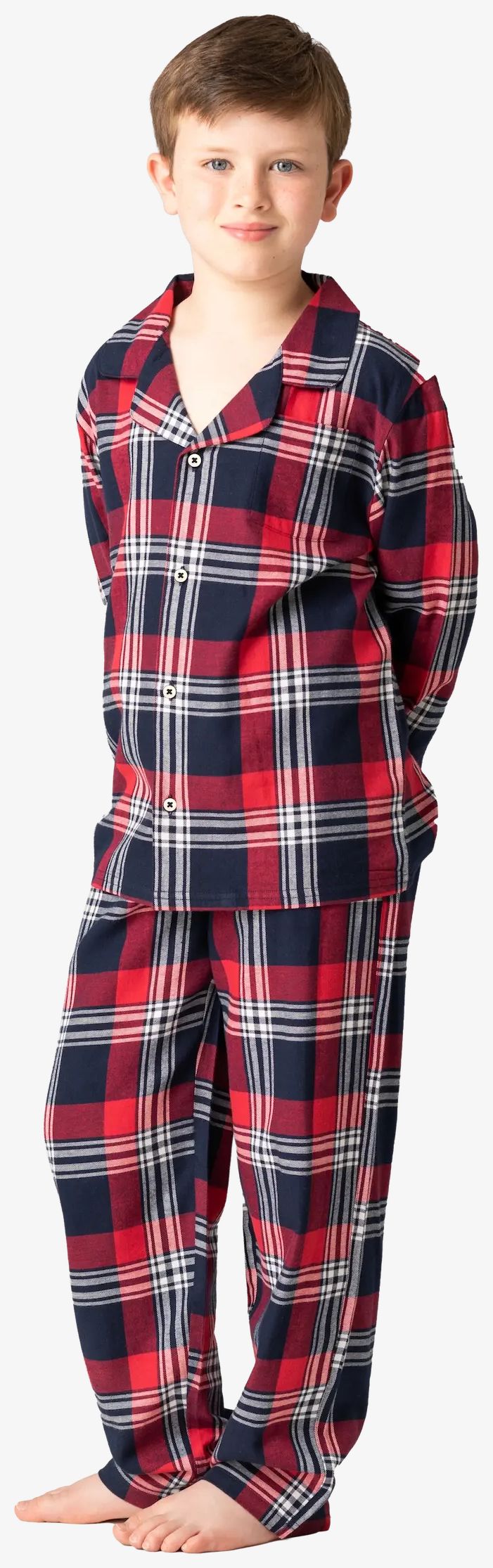 Kids' tartan lounge set består av en skjorta och en avslappnad byxa i bomull. Skjortan har en infälld bröstficka och en enkel fåll. Byxan har helt elastisk midja. Etiketten är avtagbar för enkel ändring av utseende.\n\n- 100 % bomull\n- Skjorta med infälld ficka\n- Byxa med elastisk midja\n- Avtagbar etikett Vikt : 115g/m²