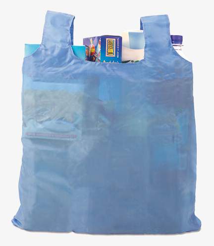 Shoppingväskan är tillverkad i polyester med korta handtag och en plastkarbinhake. Går att vikas till en liten väska, vilket möjliggör mångsidig och praktisk användning.