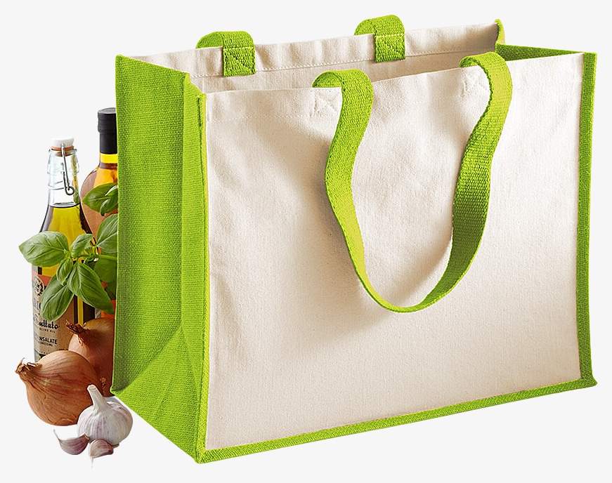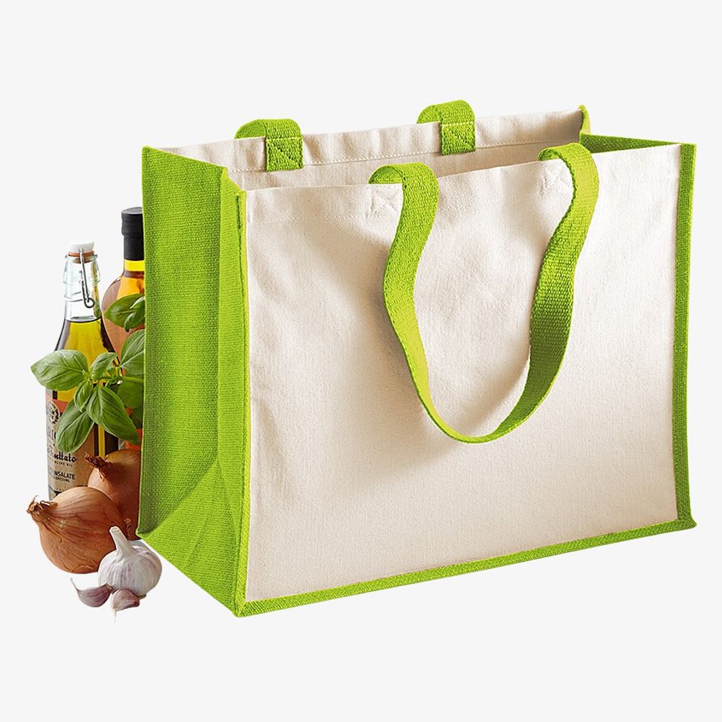 The Printers Jute Classic Shopper is a shopping bag made of laminated jute with cotton canvas sides for printing. It can be carried by hand or over the shoulder thanks to its cotton handles.