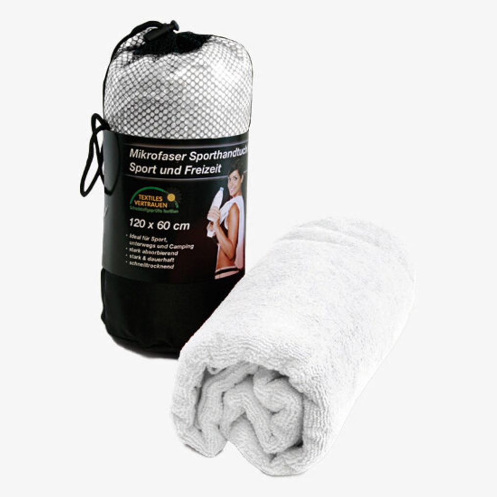 Sporthandduken i polyester-mikrofiber är avsedd för sportanvändning. Den levereras med en svart nätpåse för att underlätta transport och förvaring. Handdukens mått är 60 x 120 cm.