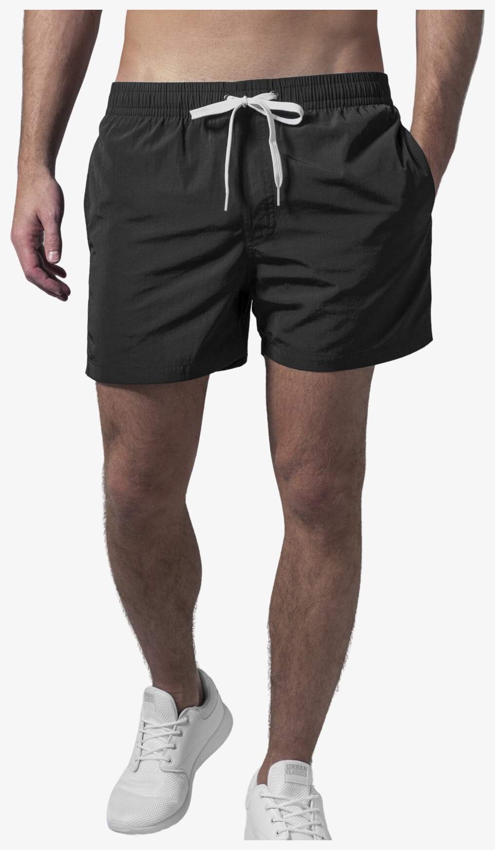 Swim Shorts är en nylonshorts med polyesterfoder. Den har en neutral etikett med storleksangivelse.