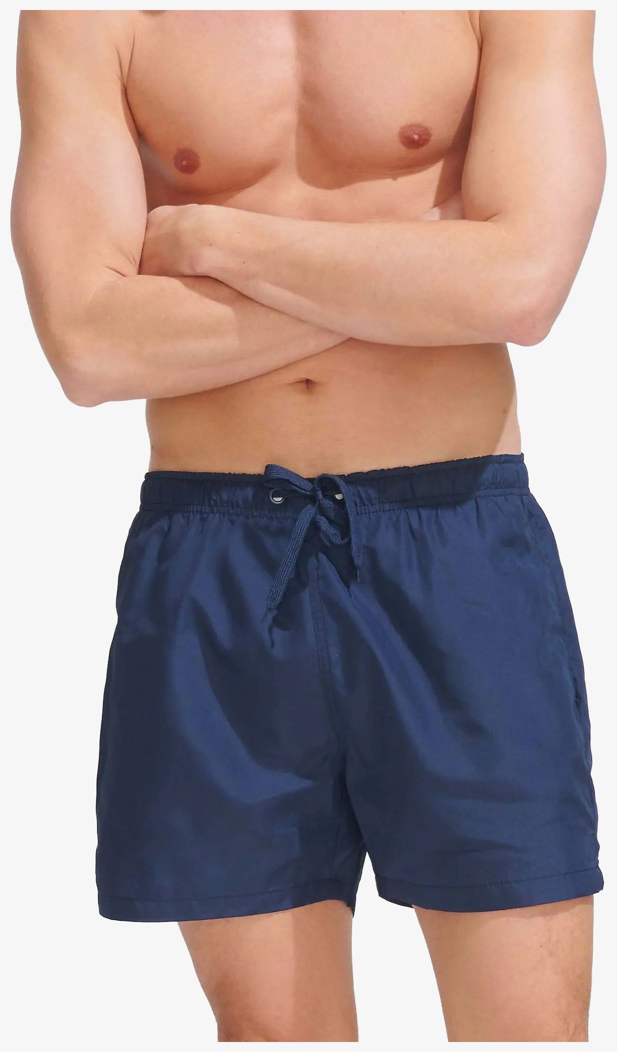 Shorts Sandy i polyester-mikrofiber är avsedd för herrbad. Den har elastisk midja med ton-i-ton snöre, två sidofickor och en bakficka med klaff och kardborrband. Sidospjällen underlättar rörelser.