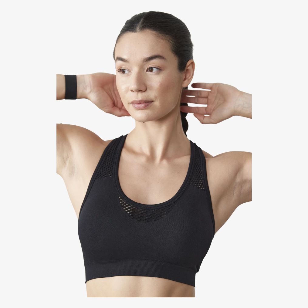 Den sömlösa sport-bhn har avtagbara vadderade kupor och lätt stöd lämpligt för olika aktiviteter. Den har racerback-rygg och meshdetaljer på framdelen av axelbanden samt på ryggen för bättre ventilation. Avtagbar etikett.