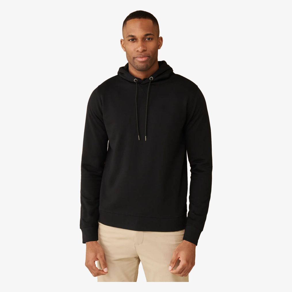 Huvtröja i regenererad bomull och återvunnen polyester med borstad insida för ökad komfort. Försedd med ribbstickade muddar vid handleden och raka ärmar.