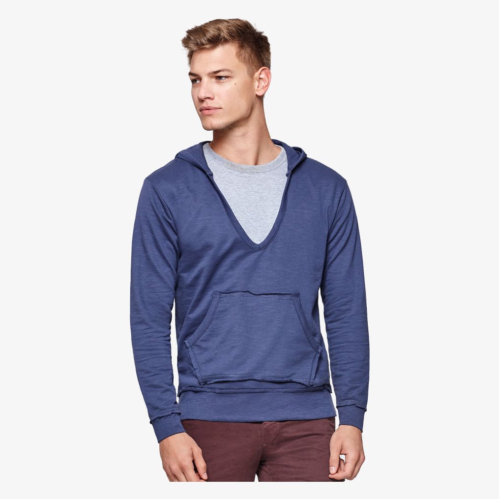 Hoodien Amandus su1102 har en uttalad V-ringning med ton-i-ton kant, en känguruficka och ribbade avslut vid ärmslut, ficka och fåll med råa kanter. Den melerade grå färgen 58 innehåller en sammansättning av 85% bomull och 15% viskos.