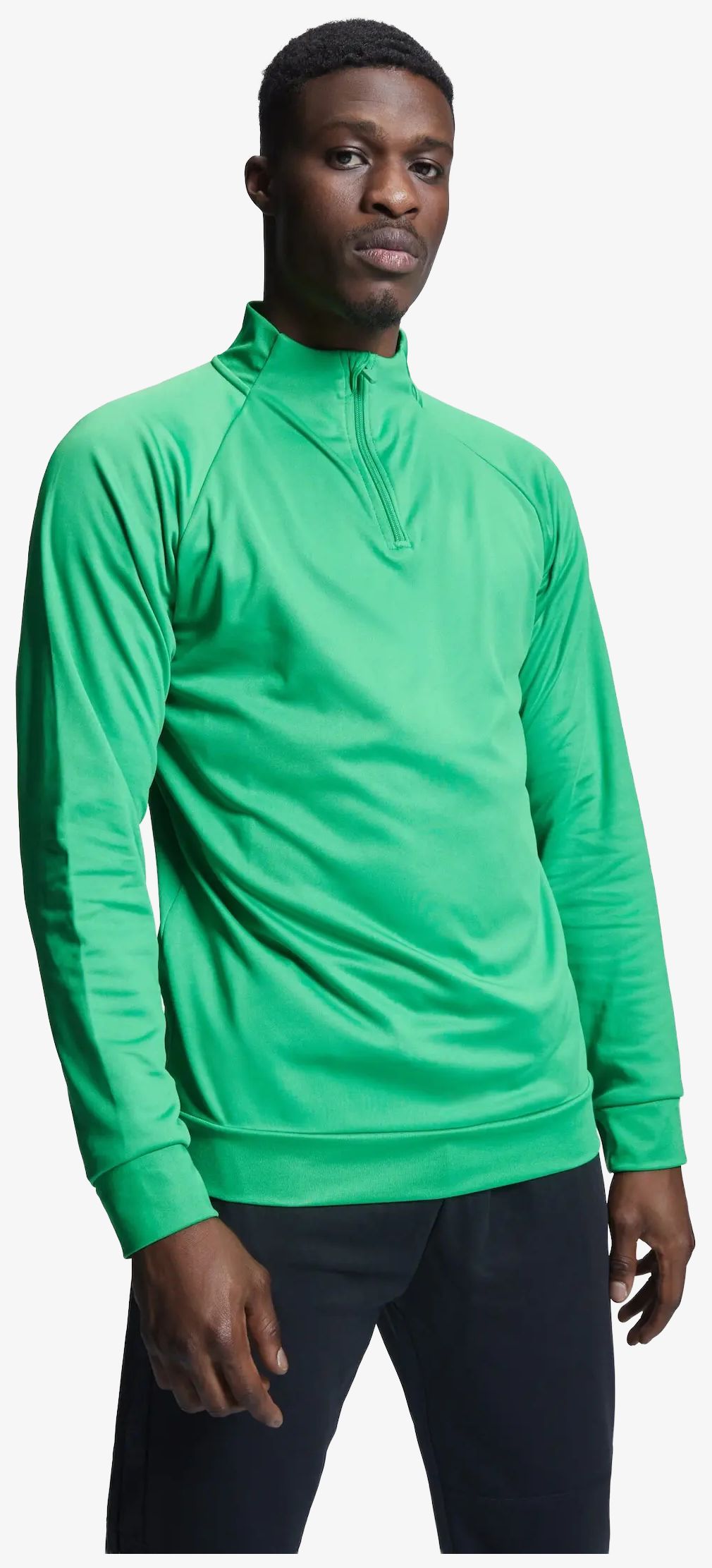 Raglanärmig sweat har borstad fleece på insidan med halvlång dragkedja och ton-i-ton förstärkt nackband. Bakre halsringning och muddar är i 1x1 ribb.