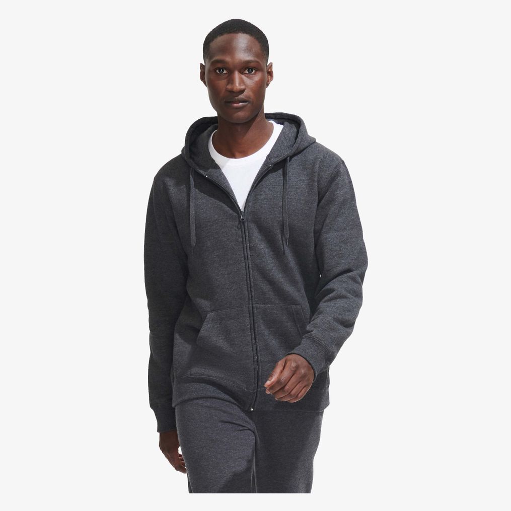 Seven Men herr ziphoodie 47800 i sweatshirtmaterial, borstad insida, fodrad huva och ton-i-ton-dragsko. Isydda ärmar och två kängurufickor.