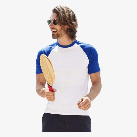 Shortsleeve Baseball T är en tee-shirt i bomull, med 1 x 1 interlock-passpoalkrage med lycra och kontrasterande raglanärmar. Dubbelsömmar vid kragen och vid ärmsluten bidrar till en ren finish.