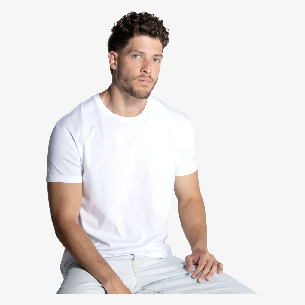 T-shirt herr i bomull. Rörformad passform. Dubbelstygn vid axlar och nederkant. Renbandsband vid hals och axlar.