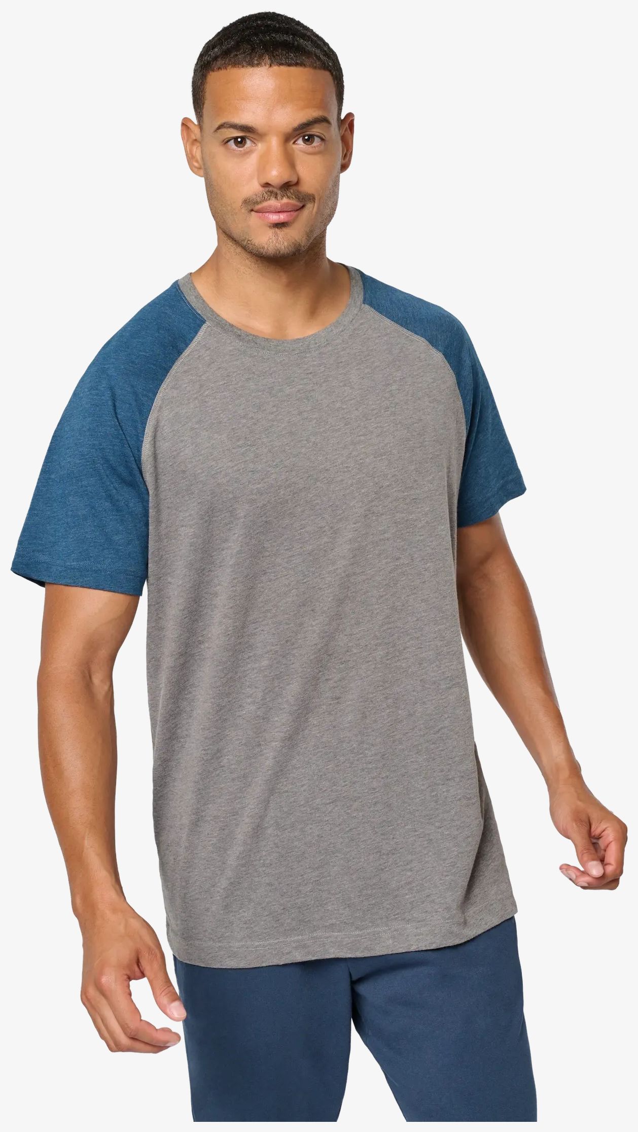PA4010 - T-shirt triblend bicolore sport manches courtes unisexe - grey_heather/sporty_navy_heather