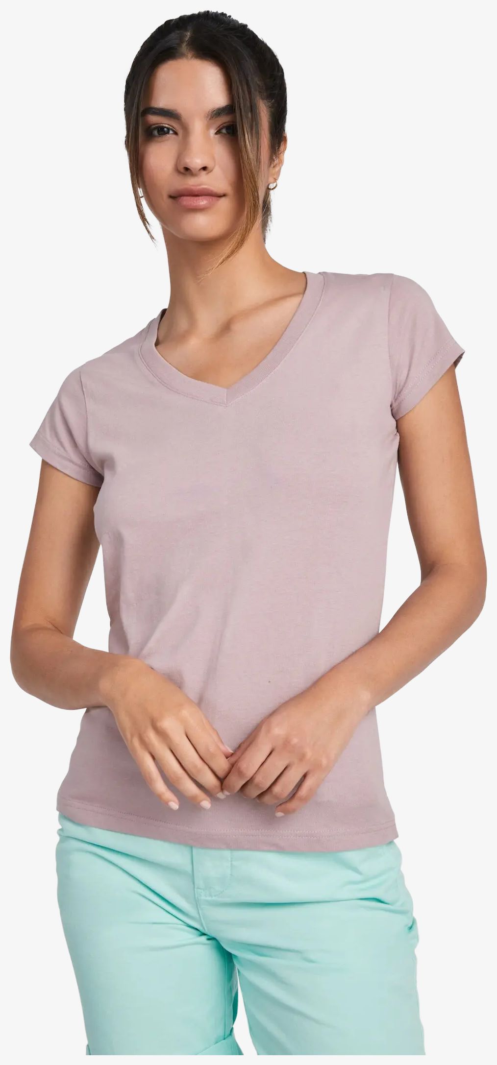 Victoria tee-shirt för dam med korta ärmar, V-ringning i 1x1-ribb och nära passform. Sidosömmar och avtagbar etikett.