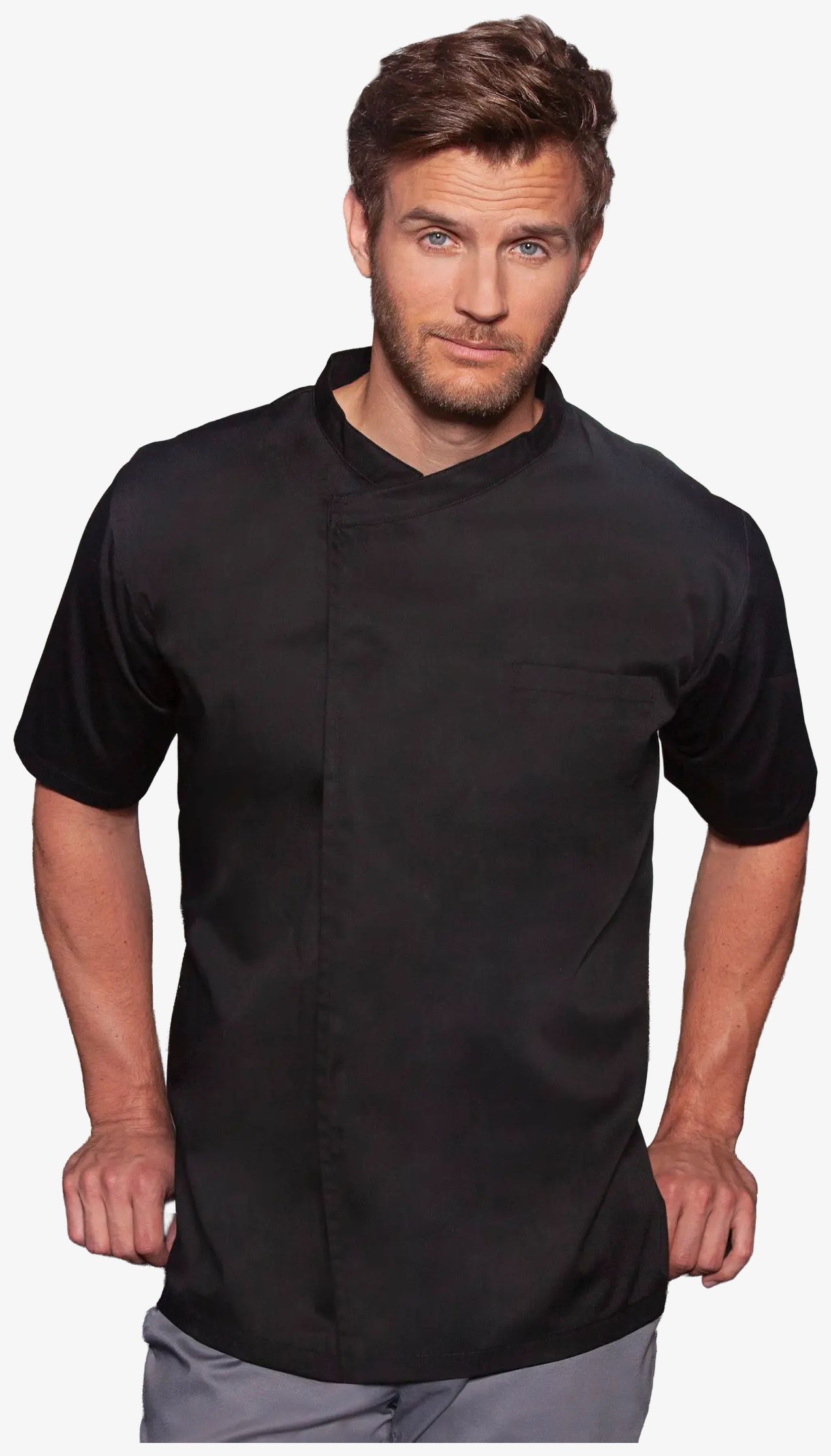 BJM3 - Short sleeve throw-over chef shirt basic - black
